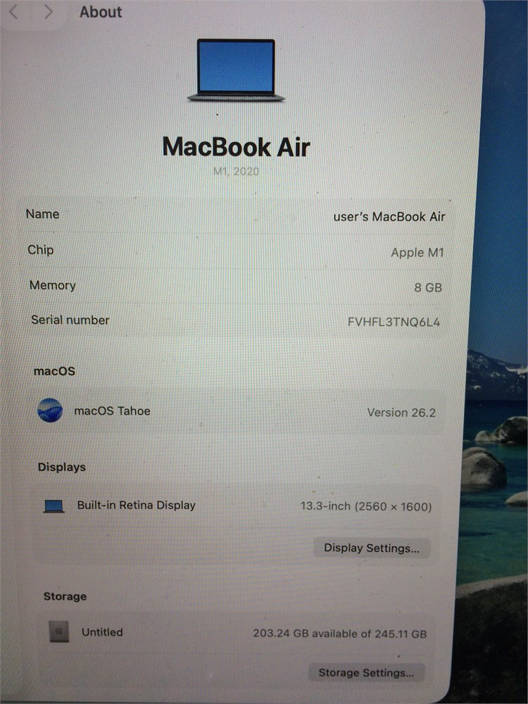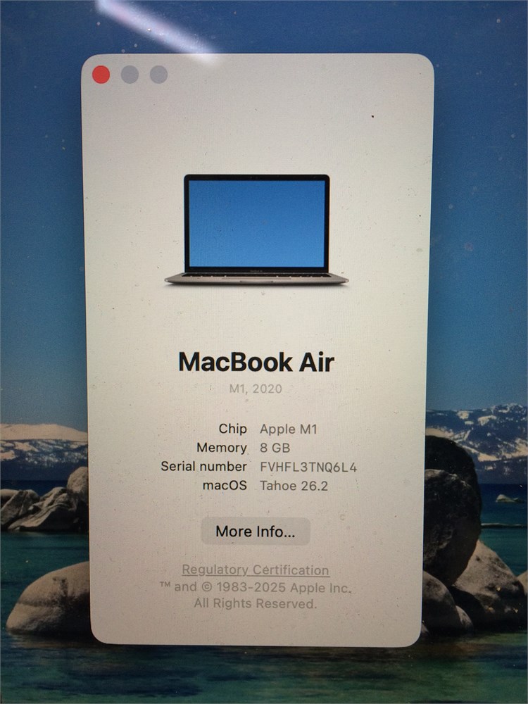 MacBook Air 2020 - Apple M1, 8GB RAM, 256GB NVME SSD, Tahoe View Watchlist >