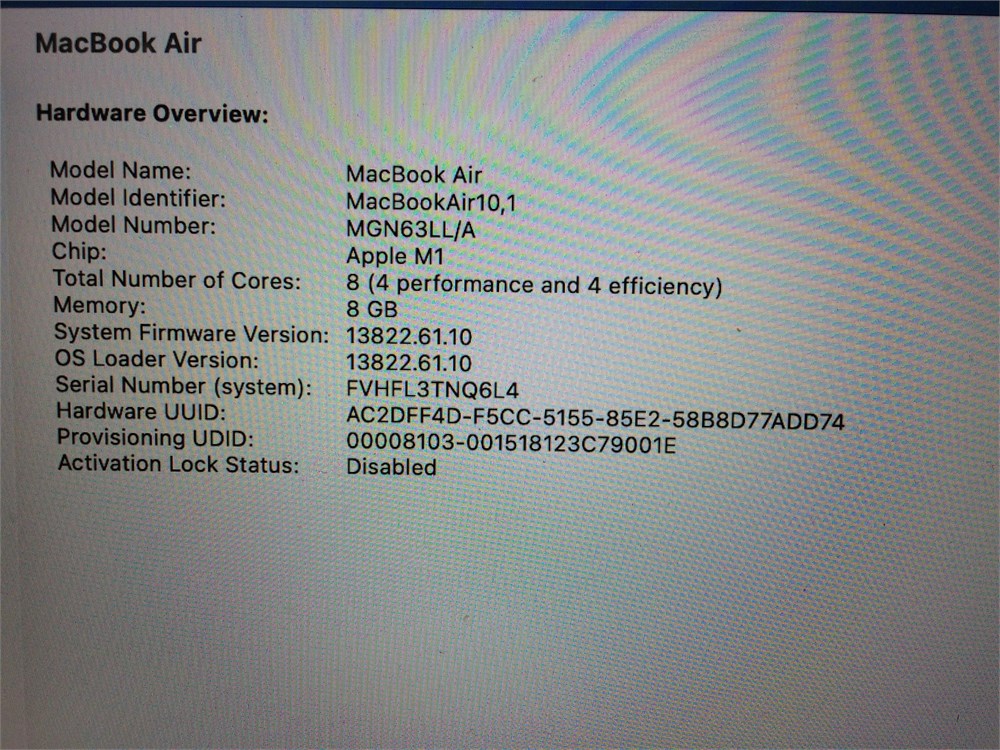 This listing is for a single tested and working Apple MacBook Air 2020 with the following specs: